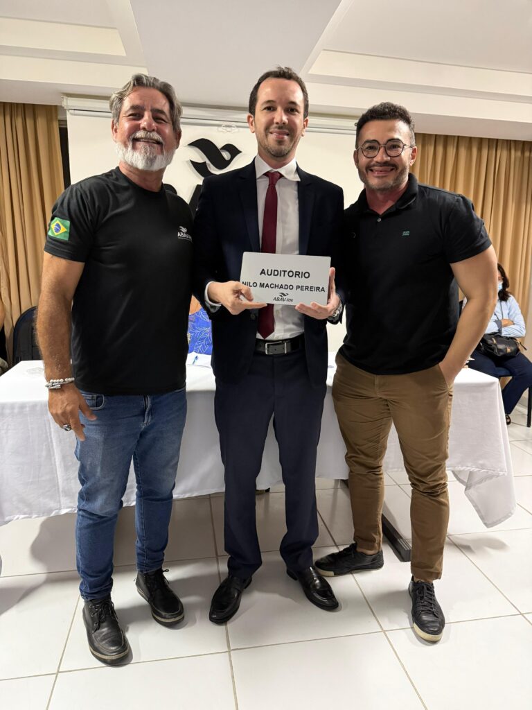 Em outro momento emocionante, a ABAV-RN prestou uma justa homenagem ao eterno Nilo Machado, figura de grande relevância na trajetória da entidade e do turismo no Rio Grande do Norte. A partir de agora, o auditório da ABAV-RN levará o seu nome, perpetuando sua memória e legado.