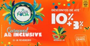 Para tornar a experiência ainda mais atrativa para as famílias, o pacote de Carnaval oferece 10% de desconto no valor das diárias, além de 3% de abatimento adicional para pagamentos via Pix. O benefício inclui ainda a gratuidade de hospedagem para duas crianças de até nove anos, acomodadas na mesma suíte dos pais.
