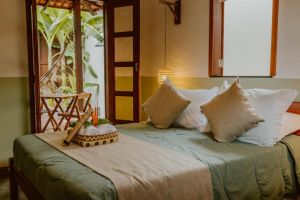 Para deixar a experiência ainda mais completa, o Recanto Alter do Chão oferece quartos com ar-condicionado, banheiros privativos e vistas para o jardim ou para a montanha.