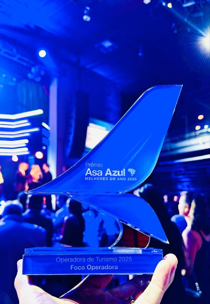 A Foco Operadora de Turismo foi reconhecida com o Prêmio Asa Azul, concedido pela companhia aérea Azul Linhas Aéreas, em reconhecimento à sua excelente performance em vendas no ano de 2025.